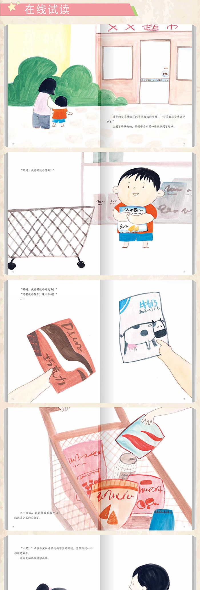 当小孩子处在一个无法正确分清他人东西和自己东西的年纪时,他们很容易因为喜欢一样自己没有的东西,而不问自取。那么该如何指导孩子不要乱拿东西呢?小星因为喜欢他的好朋友的手表,看到超市里相同的手表,就问妈妈要。可是妈妈没有给他买。后来他就偷偷装走了。在结账时被保安看出来了,小安把表交了出来。妈妈也教育了他,他再也不敢乱拿东西了。《不要随便拿走东西》是一本原创儿童绘本,图文并茂,有教育意义。书中所选的小朋友的坏习惯和遇到的事例都是孩子们在成长中会遇到的,非常贴近生活。家长们可以为孩子阅读故事,让孩子们融入其中,感同身受,从而达到学习成长的效果。是成长期小朋友阅读的良选。故事简介情节完整,有极强的代入性,潜移默化,帮助孩子健康成长。