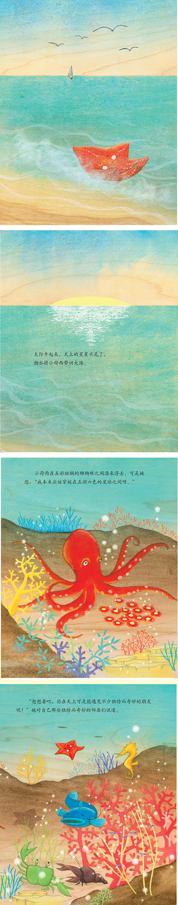 从碧蓝的浅海到幽寂的深海,从可爱的米诺鱼到大块头蓝鲸,从遇到章鱼到和会发光的琵琶鱼对话,小海星一直在寻找更壮丽的风景,幻想自己能成为天空中*闪亮的星星,可是她还没有发现自己所拥有的已经超乎了她的想象……