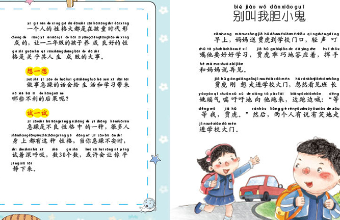 培养孩子好的品格并没有想象的那么难,父母除了言传身教,另一个方法就是通过阅读学习发生在别人身上的故事,看别人的处理方法,从中学习对自己有用的知识。这里面的每一个故事,都在潜移默化中,教会孩子们一个相关方面的道理,包含了社交、自信和尊重等方面,也可以看做是一堂生动有趣的情商课。
