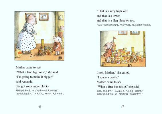 我们和孩子共读这12本书、54个成长故事,最受益的还是孩子。故事里小猪兄妹的生活点滴,虽然相距遥远,却仿若发生在自家,孩子们开始学会用小猪兄妹的口吻安慰妈妈,还会在大热天摆上一个柠檬汽水摊赚上一小笔零花钱……小猪哥奥利弗和猪小妹阿曼达真的棒极了,他们是孩子们成长的好榜样。