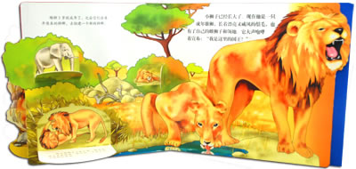 本套系列精致的“翻翻”页设计让孩子们通过自己动手“翻开”树叶观察小狮子,“翻翻”页上的文字用来引导孩子观察小狮子的不同之处,并且告诉孩子这些特点对小狮子有什么样的作用。这样的一种互动阅读,不仅仅带给孩子丰富的知识,更是在引导孩子如何发现、如何观察、如何学习新的事物。