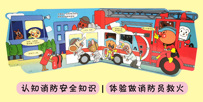 面包超人用纸板游戏带0-4岁幼儿立体情景式科学认知 生活认知。采用食品级纸板制作,每一页都有不同的特殊镂空设计,立体情景式带孩子们上街买东西,一起救火,一起逛动物园,一起乘坐天上的各种交通工具。捉迷藏的效果让孩子始终保持新鲜感和探索欲。根据四大主题,还可以搭配自己的玩具、涂鸦甚至是手指,开创洞洞书的无限玩法。《和面包超人一起救火》中面包超人告诉大家,有火灾出现时,救火车和救护车往往是同时出动的。即使在没有火灾的时候,每天都要检查轮胎、梯子、水管、灭火器等救援设备。这次你将和面包超人一起参与,拯救火灾中的细菌人。小手翻一翻,大火全扑灭。