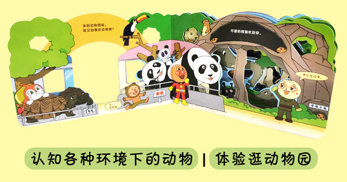 面包超人用纸板游戏带0-4岁幼儿立体情景式科学认知 生活认知。采用食品级纸板制作,每一页都有不同的特殊镂空设计,立体情景式带孩子们上街买东西,一起救火,一起逛动物园,一起乘坐天上的各种交通工具。捉迷藏的效果让孩子始终保持新鲜感和探索欲。根据四大主题,还可以搭配自己的玩具、涂鸦甚至是手指,开创洞洞书的无限玩法。 《和面包超人逛动物园》面包超人将带你畅游动物园,这里不仅有熊猫、大象,还有很多生活在寒冷地带的动物们,北极熊、海狮、海豹……大象的鼻子从上一页伸过来啦!小手快翻一翻。接下来是认识夜间动物们,豹猫、蝙蝠、非洲食蚁兽……还有热带草原上的动物呢,这一天可真开心。