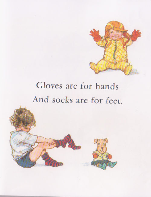 Hats and coats, shoes and socks, zippers and buttons... A lively toddler and her baby brother have fun dressing up in a variety of clothes - indoors and out, in rain and in sunshine!