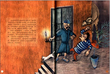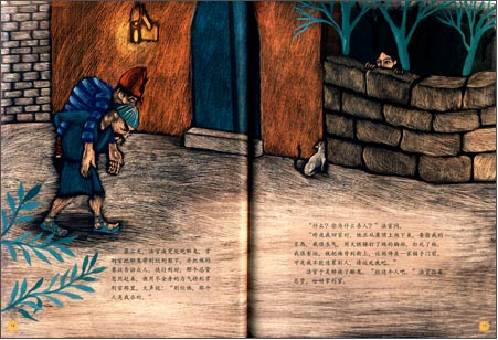 3、富有漫画特色的叙事风格:《阿拉丁和神灯》《辛巴德航海历险记》,文字和画面,两头叙事分头并进,完美结合。