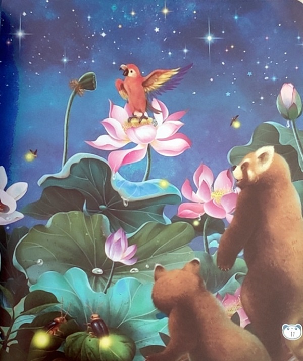 《唱歌晚会》:夏天的夜晚,星光灿烂,动物们要在荷塘举办唱歌晚会了。青蛙的大合唱、百灵鸟嘹亮的独唱、夜莺婉转的歌声、蛇的舞蹈、鹦鹉的仿唱让这个夏夜热闹非凡。