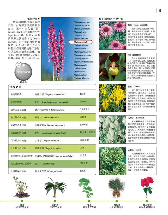 本书通过大量生动有趣的图片和通俗易懂的文字介绍了如何使用网站 、植物的世界、什么是植物、茎和根、蒸腾作用、叶 、植物对光的依赖、植物是如何生长、植物的多样性、藻类 、真菌和地衣、苔藓植物、蕨类植物 、种子植物、裸子植物、被子植物、花 、动物授粉、风媒授粉、植物是如何传播的、生命的萌动、无种繁殖、草 、兰科植物、阔叶植物 、棕榈植物 、肉食性植物、附生植物、藤蔓植物、寄生植物、植物的自我保护、有毒植物 、沙漠植物、山地植物、淡水植物 、海岸植物等科普知识。
