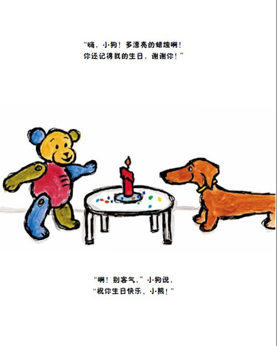 “小狗和小熊“系列共三册,每册三个小故事,《两个好朋友》的故事有: