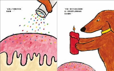 (2) 小狗为小熊做了一个生日蛋糕,可是蛋糕那么香,小狗忍不住吃光光,剩下一根蜡烛,他该怎么办?小熊又会怎么反应?