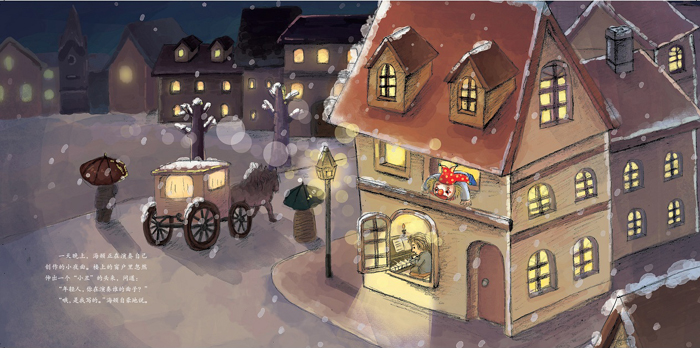每次读到贝多芬的父亲深夜回家,被天棚上掉落的水滴砸中脑门儿的时候,我家宝贝总是乐个不停!还用小手指着贝多芬爸爸的脑门儿,循着那滴四溅的水珠寻找出处。我不知道别人的宝贝是不是也因为一个特别喜欢的细节反反复复读一本书?但我知道,我的宝贝就是因为那滴水认识了贝多芬。