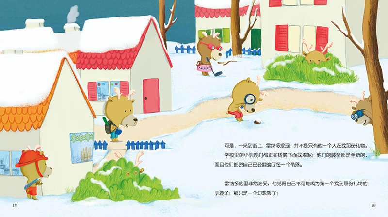 雷纳多是一只不太擅长运动的小驯鹿,总是被同学们嘲笑。一天,外婆在报纸上发现了一条大新闻:圣诞老人和他的小精灵弄丢了一份礼物,而那份礼物本来是给一个小女孩准备的。外婆和外公都鼓励雷纳多去寻找那份丢失的礼物,雷纳多带上装备,出发了……