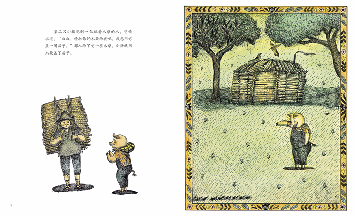 三只小猪想各自盖一间房子。老大用的是稻草,老二用的是木柴。不过,他们的房子都被狼轻松地吹垮了,*后,自己还被狼给吃掉了。后来,老三用砖头盖了一间房子……故事中,完全相同文字的重复,是一种快乐,这个故事在英国流传很广。