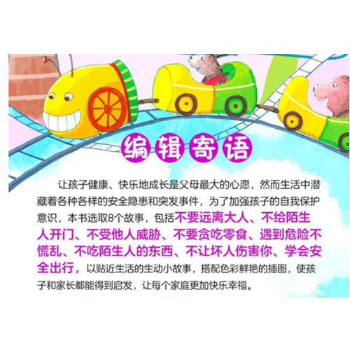 让孩子健康、快乐地成长是父母最大的心愿,然而生活中潜藏着各种各样的安全隐患和突发事件,为了加强孩子的自我保护意识,本书选取8个故事,包括不要远离大人、不给陌生人开门、不受他人威胁、不要贪吃零食、遇到危险不慌乱、不吃陌生人的东西、不让坏人伤害你、学会安全出行,以贴近生活的生动小故事,搭配色彩鲜艳的插图,使孩子和家长都能得到启发,让每个家庭更加快乐幸福。