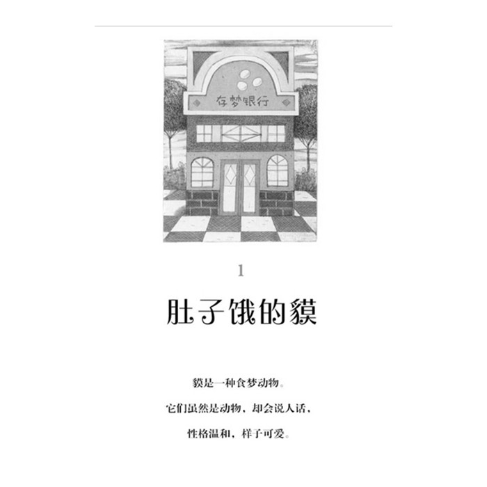 这天,老松头儿兴奋地跑到存梦银行的柜台前说:“我做了一个好梦,想要续梦。本想早点过来,但因为要带一个作为手续费的噩梦,所以才拖到现在。” 貘太郎笑盈盈地迎接了他。“做了噩梦马上拿来就好,好梦随时可以续长,您每天都可以来。” 貘太郎察看了老松头儿带来的梦:一个下大雨的梦,一个举办婚礼的梦。貘太郎没多想便吃了下雨梦,并开始续婚礼梦。在梦中,老松头儿可爱的孙女身穿金线织花锦缎的嫁衣,正要骑马出嫁。 不能把马变成汽车,更不能变成新娘子开车……貘太郎小心翼翼地从头到尾仔细察看了一遍,然后把马鬃梳理好,又把新娘子手里拿着的扇子镶上了珍珠。 谁知,老松头儿第二天大失所望地跑到了存梦银行,“貘太郎,你可不能把梦给搞错了呀。你把好梦给吃掉了,而噩梦变得更糟了……” 貘太郎大吃一惊,“怎么会呢?我是把下雨的噩梦吃掉了,又把出嫁的好梦加长了啊……”
