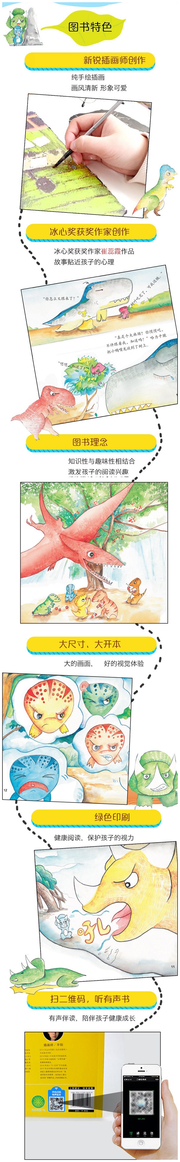 这是一套恐龙故事绘本,选取了6种恐龙作为主角,每本书中主角和其生活在同时代同地区的其他种类的恐龙一起讲述了一个主题故事。书中有关于爱、勇气、团结、尊老爱幼等6个美好而温馨的故事。有趣的故事、可爱的恐龙形象,把原本印象中凶猛的恐龙也变得亲近可爱了。