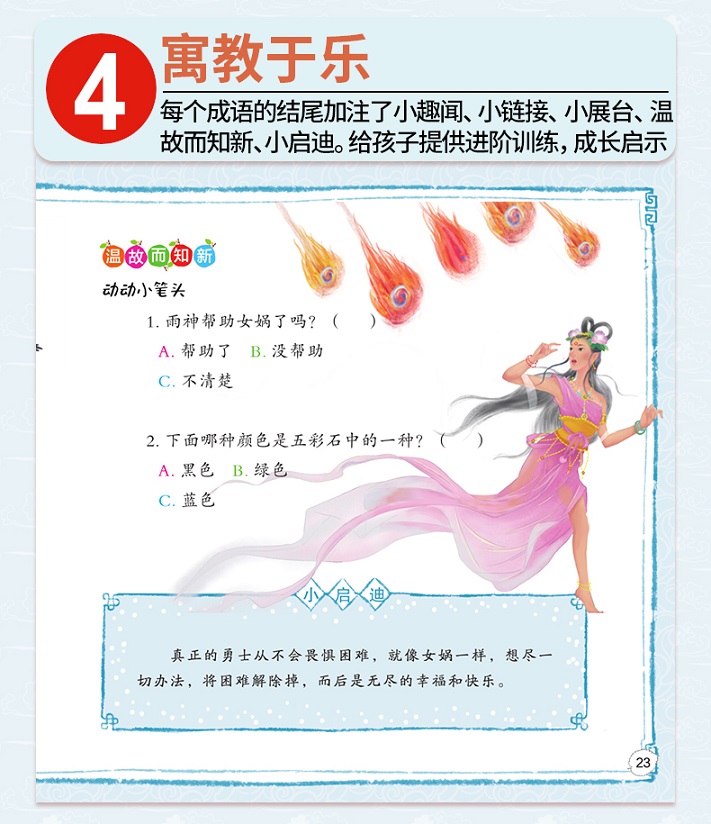 《女娲补天》是幼儿绘本系列之一。生动、形象、色彩丰富,《女娲补天》这本书,主要讲的是,天漏了!为了保护生灵百姓,女娲不畏艰险,四处寻找五彩石用来补天,后来终于成功了,女娲也成了人人敬仰和爱戴的人,一直传诵至今。
