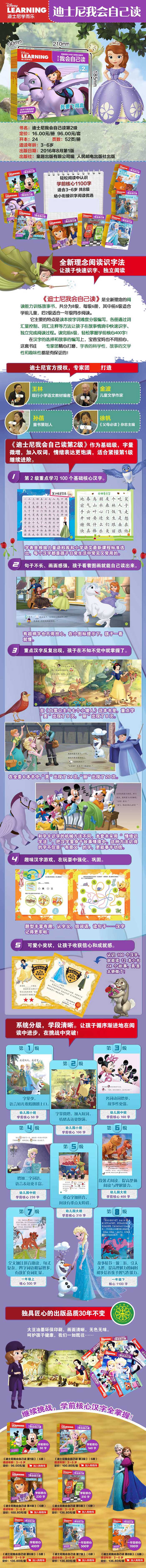 这是一本图画故事书。全部故事均选自深受小朋友欢迎的迪士尼知名品牌。由强大的专家团队联手合作;从语言学的角度和孩子的年龄特征出发,制定了较为科学的分级字表;按照字表对故事进行改编的同时保持故事的趣味性和韵味;填补了中文分级读物市场的空白。