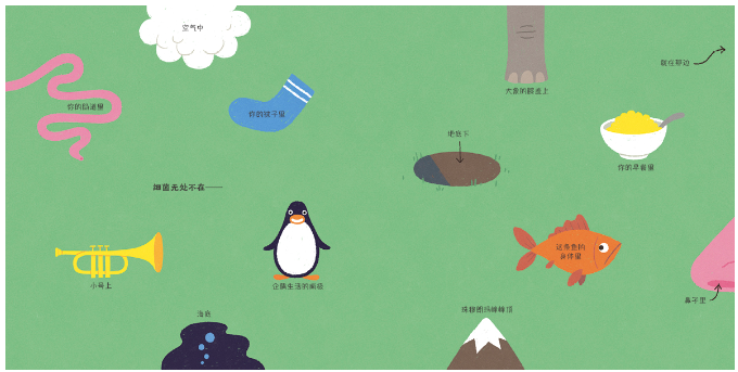 这是一本奇妙的书!它鼓励小孩跟着四个有趣、友好的小细菌,做点小实验,进行一段充满想象的旅程。画面特别美,结合了可爱的卡通细菌图和显微镜照片。超级推荐!——亚马逊读者评论为什么不能舔这本书?因为它上面遍布着细菌!这是一本超好玩儿的讲科学的书。——《科克斯书评》