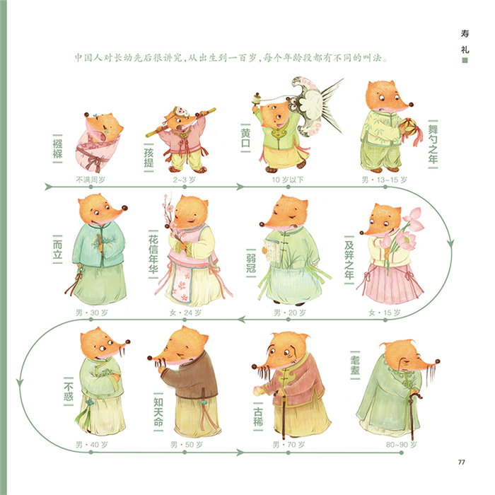 这是一套写给4~9岁儿童的传统文化类绘本,套装共2册,分别为《中国人的成长礼仪》《中国人的聚会礼仪》。本册简介:人的一生都是在家人、朋友的爱与祝福下度过的,这本成长礼仪书用温暖的文字描述了人生几个值得纪念的时刻。“求子”、“出生”、“洗三朝”、“百日”、“抓周”、“拜师”、“成人礼”、“登科”、“结婚”、“寿礼”、“丧礼”,本书将这些人生重要时刻汇集起来,用孩子的视角讲述了九个小故事,在每一个故事里都详细描述了古代老百姓是如何举办仪式的。