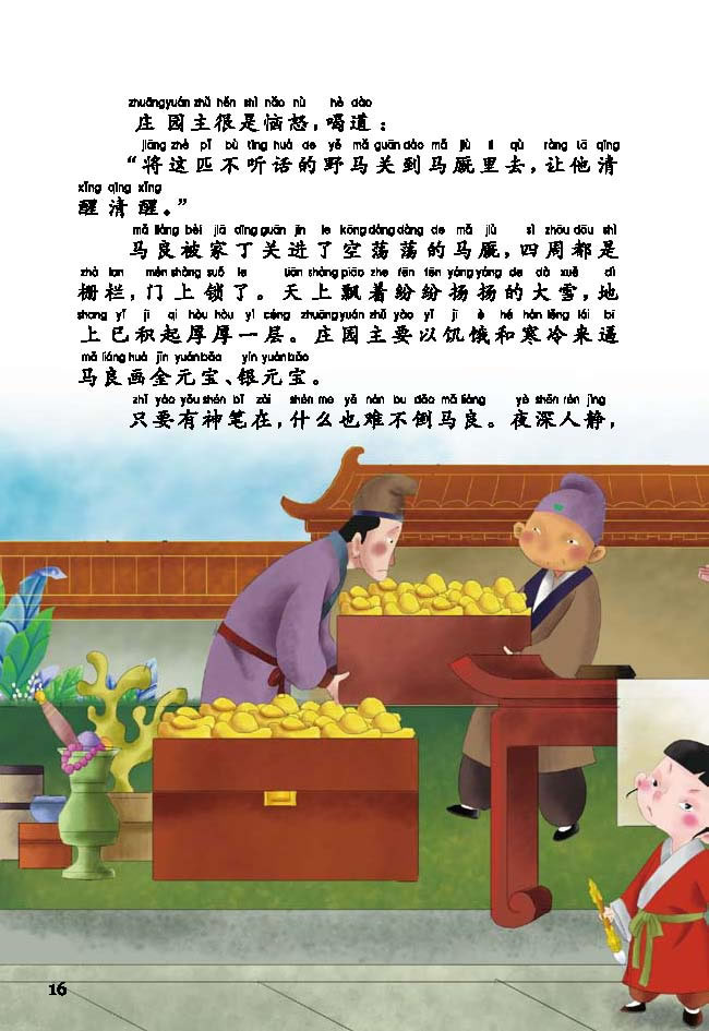 《新课标名著小书坊:神笔马良(注音版)》汇集了洪汛涛先生著名的三部童话作品:《神笔马良》《狼毫笔的来历》《破缸记》。《神笔马良》农家孩子马良以一支神笔惠泽劳苦大众、杀死了贪心的皇帝。《狼毫笔的来历》为黄鼠狼翻案,文中的黄鼠狼一心为人消除鼠害,却遭到人类误解。《破缸记》讲的是司马光第二次破缸的故事,这个故事题材是古代的,但表现的思想是现代的,说明历史前进的潮流是挡不住的。