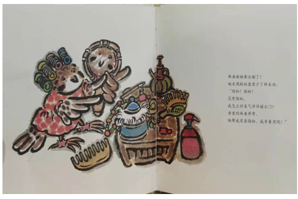 麻雀生蛋粒粒滚,叫声哥哥去买粉;买得粉来不会搽,又说哥哥不买麻;买得麻来不会绩,又说哥哥不买笔;买得笔来不会削,又说哥哥不买刀;买得刀来不会磨,又说哥哥不买鹅;买得鹅来不敢杀,又说哥哥不买鸭;买得鸭来不会钳,又说哥哥不买田;买得田来不会作,又说哥哥不洗脚。逼得哥哥洗了脚,把田作,作了田,把毛钳;钳了毛,把鹅杀;杀了鹅,把刀磨;磨了刀,把笔削;削了笔,把麻绩;绩了麻,把粉搽;搽了粉,麻雀生蛋粒粒滚。