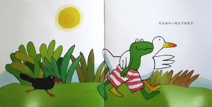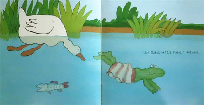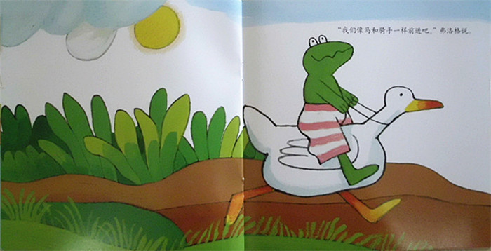 弗洛格和小鸭在外面散步,他提议到池塘里游泳,他先是要求骑在小鸭背上,让小鸭朝前游;后来又嚷嚷着上岸,他继续骑在小鸭背上,让小鸭往前跑。最后,大家都累了,弗洛格提议大家回家睡觉吧。睡觉之前,小鸭对他说:“我们永远都是好朋友。”弗洛格虽然耍了些小聪明,可是他的内心是非常珍惜友情的。