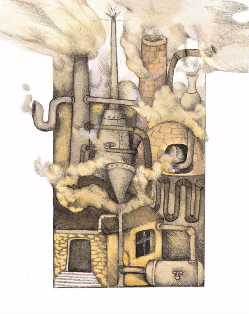 作为一个环保主义者和非政府组织成员,有两样东西一直让我很担忧:噪音和污染。第一样毁掉了宁静,第二样毁掉了我们的肺。所以有一天,当看到西班牙阿维莱斯的一座工厂正向空气中喷散着成吨的黑色烟雾时,我突然想到,如果那里面不是技术人员在工作,而仅仅是在生产云朵——彩色的云朵,充满奇幻色彩的云朵,是不是可以让孩子们望向天空微笑,而不是因酸雨而感到害怕。