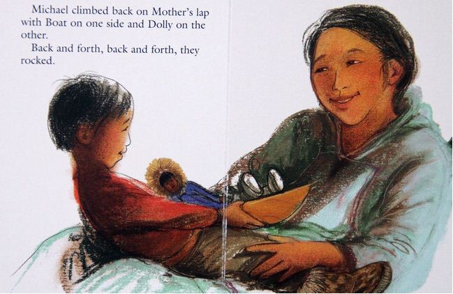 A little Inuit boy discovers there's room for himself and hisbaby sister on their mother's lap.