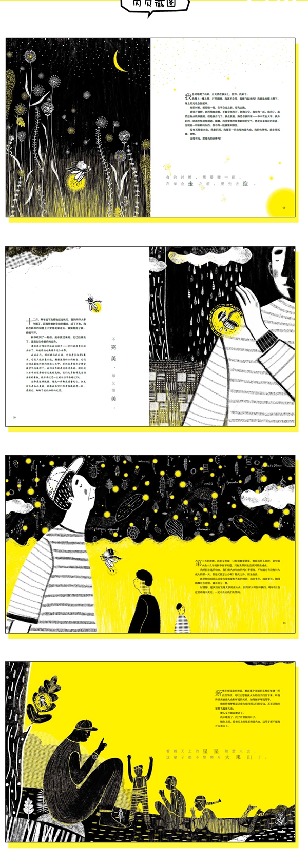本书通过绘本的形式,以一只萤火虫的口吻讲述了它们在黑暗中寻找光明,不完美却有很美的生命故事。这些光亮,虽然微弱,却照近了孩子们的童年里。