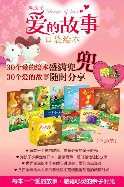 ■“暖房子爱的故事口袋绘本”系列,每本一个爱的故事,全套共30个深受孩子和家长欢迎的爱的故事