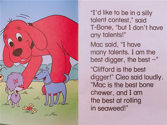 每套大红狗自然拼读套装包含了12本书和一张CD,每本书都包含了不同的重要知识点,和一个有趣的故事,这些故事围绕着Clifford和家人朋友们展开,在传达关爱和分享的同时,也让小朋友们在快乐中掌握这些重要知识点。