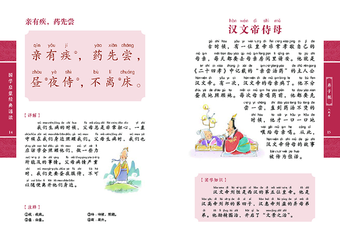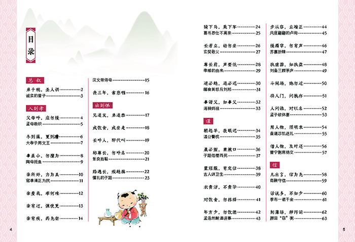 一部对学童立身处世、行为举止有详细而明确要求的国学经典读物。按每日适合诵读的学习量编排,同时配以精准的注释和通俗易懂的译文,并编写与原文相关的生动有趣的小故事和国学知识,让孩子在趣味阅读中,感受传统文化的熏陶,学习古人的智慧,进而规范自己的行为。