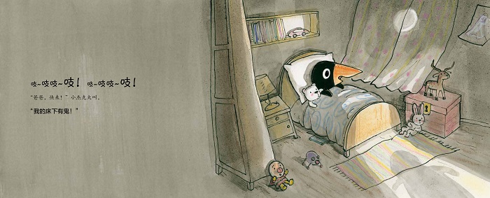 夜深了,小杰克躺在床上,一点儿睡意也没有。他翻来覆去,脑袋里不断冒出奇怪的想法。听,什么声音?吱~吱~吱~
