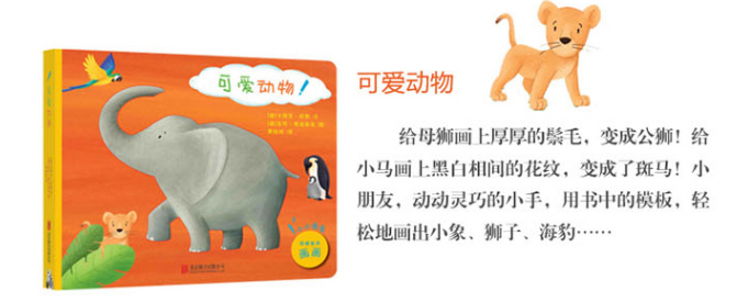 可爱动物:给母狮画上厚厚的鬃毛,变成公狮!给小马画上黑白相间的花纹,变成了斑马!小朋友,动动灵巧的小手,用书中的模板,轻松地画出小象、狮子、海豹……玩具绘画纸板书,满满的创新其乐无穷!