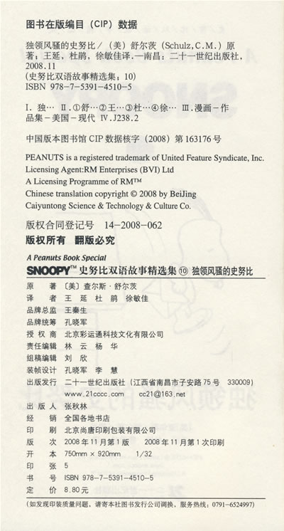 没有了史努比,二十世纪的漫画世界会变成什么模样?舒尔茨绘制了一幅永不言败的宇宙蓝图,主角是一个小男孩,他从未赢过一场棒球賽,从来没能把橄榄球踢出去。 ——麦克·罗普斯第(资深体育评论员)