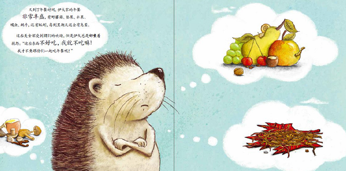 本书描写的是小刺猬如何从挑食到喜欢各种不同食物的过程。它不仅能鼓励挑食的小朋友们去尝试各种食物,享受不挑食的快乐,还能帮助小朋友们了解小刺猬的生活习性。