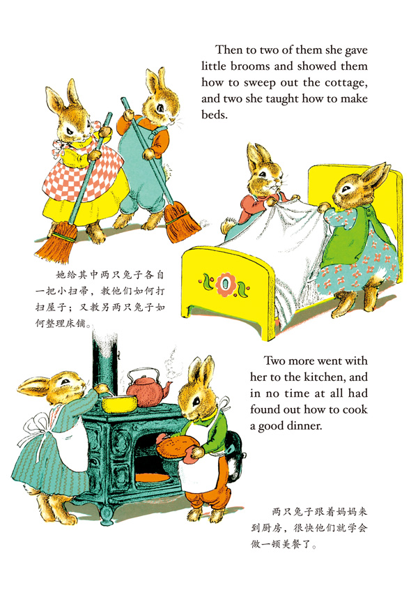 乡下兔长着棕色的毛发,尾巴像团小棉球,所以又称棉尾兔。每年复活节,住在彩蛋宫里的兔爷爷,便派出五只复活节兔,给天下孩子们送上彩蛋。当一只复活节兔老了,兔爷爷便要从所有兔子中挑出一只最敏捷、善良而机灵的兔子来接替。棉尾兔妈妈生下了二十一只兔宝宝,并要亲自照看他们。但她没有放弃争当复活节兔的愿望,与大白兔、长腿大野兔一同在彩蛋宫展示了自己的本领,如愿被兔爷爷选中……故事的结尾,如小朋友们所期待的,快乐而美好。棉尾兔还得到了兔爷爷特别的奖励——一双小金鞋!