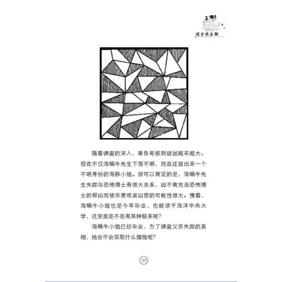 章鱼奶奶的书友会,突然遭到了恐怖袭击,谁是幕后主使?海豚小姐突然失踪,难道是自杀?海豚小姐的证件是伪造的,她的真实身份是什么?为什么大眼手里也有同一本书,难道仅仅是巧合?恐怖博士到底是什么身份,为什么能够变身?不要着急,看,章鱼哥已经把烟斗叼在了嘴里!扣人心弦的故事已经徐徐拉开了大幕……