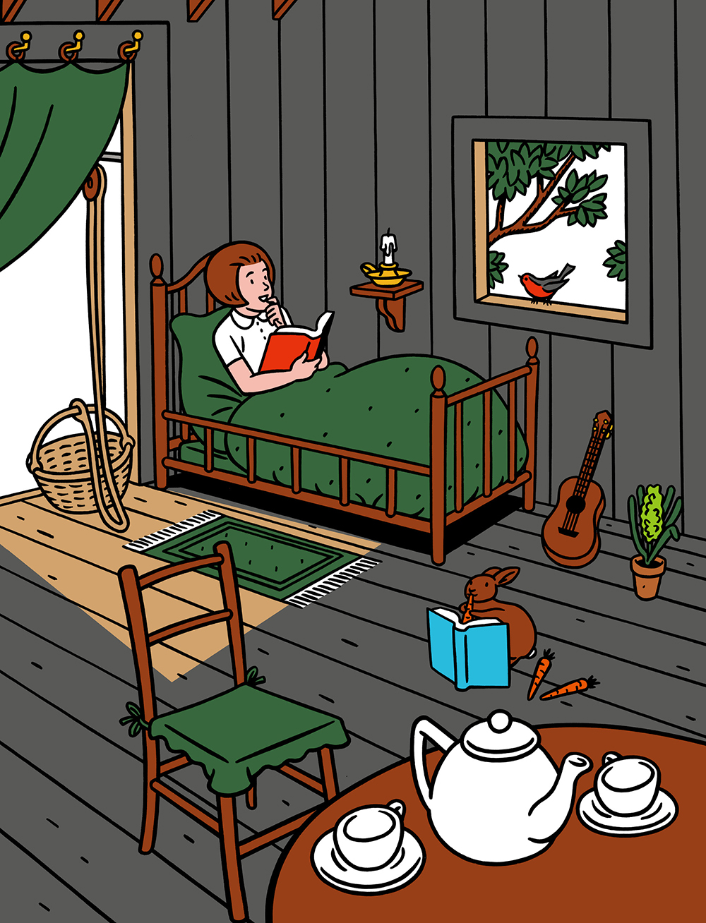 抓住弗洛克递给您的手,跳进他的书中,加入他有名的小姑娘和兔子三部曲故事吧。