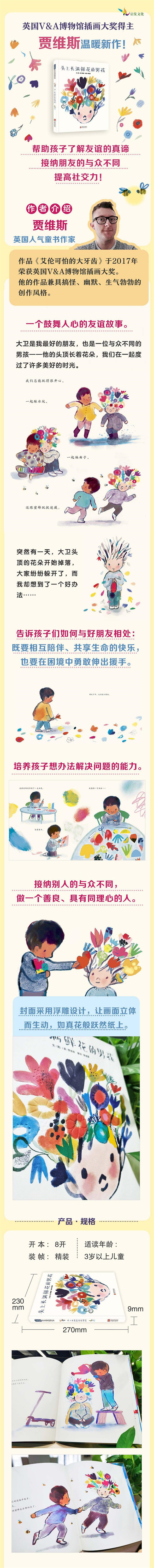 我的好朋友大卫是个与众不同的男孩,他的头发里开满了鲜花。人人都喜欢他,因为他善良、温柔,就和他头上的鲜花一样美好。我们在一起弹曲子,做游戏,和蜜蜂捉迷藏,非常快乐。有一天,大卫好像不太对劲,在我给他头上的鲜花浇水的时候,有一朵花掉了下来,那天下午,他没精打采。第二天,大卫戴了顶帽子,以前他从来不戴帽子,他变得非常安静,当他摘下帽子的时候,他头上的鲜花都掉落了,现在他头上只剩下了枯枝,大家都远离了大卫,因为害怕被他头上的枯枝扎到,大卫会好起来吗?