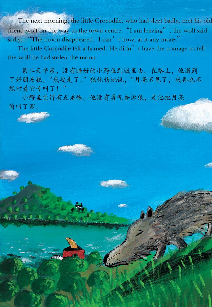 小鳄鱼非常喜欢月亮,他是多么想要拥有它呀。一天晚上,小鳄鱼终于如愿以偿啦!可是,没有月亮的夜晚变得黑洞洞的,失去月亮的伙伴们也变得闷闷不乐。小鳄鱼觉得自己很自私,但是他没有勇气告诉大家,月亮是被自己藏起来了。小鳄鱼到底会不会把月亮还给大家呢?