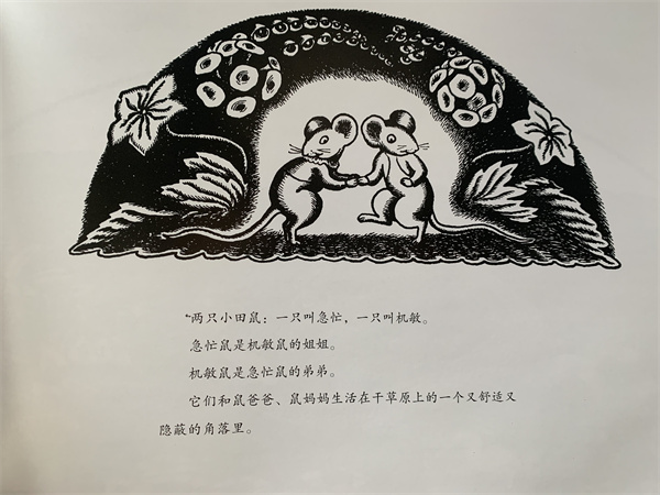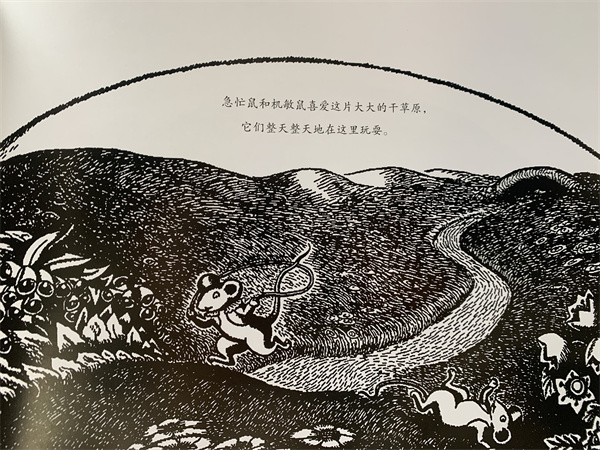 《急忙鼠和机敏鼠》两只小田鼠:一只叫急忙、一只叫机敏。 急忙鼠和机敏玩着玩着鼠妈妈的蓝色大毛线球,毛线球就从他们家这个舒适的角落滚出去了。这趟旅行把他们带到一座满是奇特东西的大房子,房子里有装满诱人味道乳酪的壁橱。机敏鼠正要咬一块放在老鼠夹里的乳酪时,他们的爸爸跳了过来解救了他们,并把他们安全地带回了家。