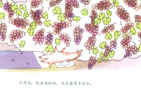 这可不是我们常常听说的那只吃不着葡萄就说葡萄酸的小狐狸,这是一只一心要自己种出好吃的葡萄、如孩子般纯净可爱执着的小狐狸。小小的书,捧在小小的孩子的手中,那份干净和甜蜜,就如同吃下一串酸酸甜甜的葡萄,味道好极了。