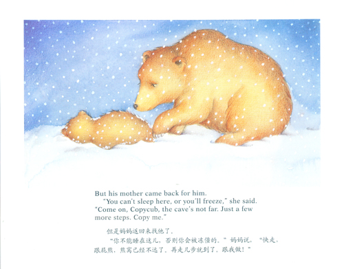 穿过小溪和水塘,爬上树去找蜂蜜,小熊总是模仿着妈妈,他似乎很喜欢这个跟着妈妈做的游戏。在一个结冰的冬天,虽然只有紧跟着妈妈才能活下去,但是小熊太累了,实在跟不上妈妈了……通过引人入胜的故事情节和栩栩如生的插图,读者会看到一个温暖的故事。