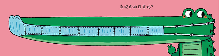 做出了一个长长的鳄鱼专属口罩......本书以幽默、夸张的画风
