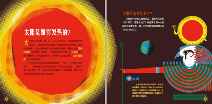 太阳和所有恒星一样,是一个巨大的气团。它的内部发生着核反应,释放出巨大的能量,因此它的温度极高,即使到了表面温度也非常高。太阳能量传递到地球靠的是辐射,准确地说是红外线辐射,肉眼看不见但你能感觉到热量。而可见光是你用肉眼就可以捕捉到的光线。如果缺少适当的保护,紫外线辐射会灼伤你的皮肤。