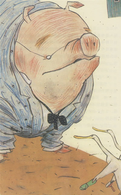“今天的天儿哟,是如此地灿烂辉煌,无比美好……”可是转眼之间,他就消失在他那一群心爱的太太中间了。他让爱德华独自困惑不解地站在那里。好像个个都知道是谁或者是什么东西来了似的,连那些特别愚蠢的小鸭子都知道,惟有爱德华不知道。只有他,帅呆了的肥猪爱德华·施派克,舍菲农庄最最聪明的,比所有动物聪明得多的帅猪不知道。他返回自己的猪舍,趴在床上慢慢地思考着。也许最好的办法是出去嘹望一下,看看这个被称作“他”或者“它”的,究竟是什么动物或者什么东西。对,他决定就这样办。