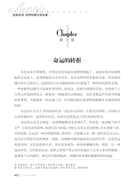 本书精选了美国著名作家杰克·伦敦的小说作品五篇,包括《热爱生命》《野性的呼唤》《白牙》等。其中,《热爱生命》讲述了一个孤独的淘金者如何在荒原上辛苦跋涉,凭借强大的生命意志与饥饿、寒冷、伤病、狼等搏斗而获胜的故事,生动逼真而又近乎残酷地展示了人性中勇敢和坚忍这两种伟大的品质。《野性的呼唤》讲述了一条名叫巴克的狗如何被迫离开温暖舒适的田园,历尽磨难,成为森林狼领袖的故事,曾被多次改编成电影搬上银幕,深受世界各地读者的喜爱。