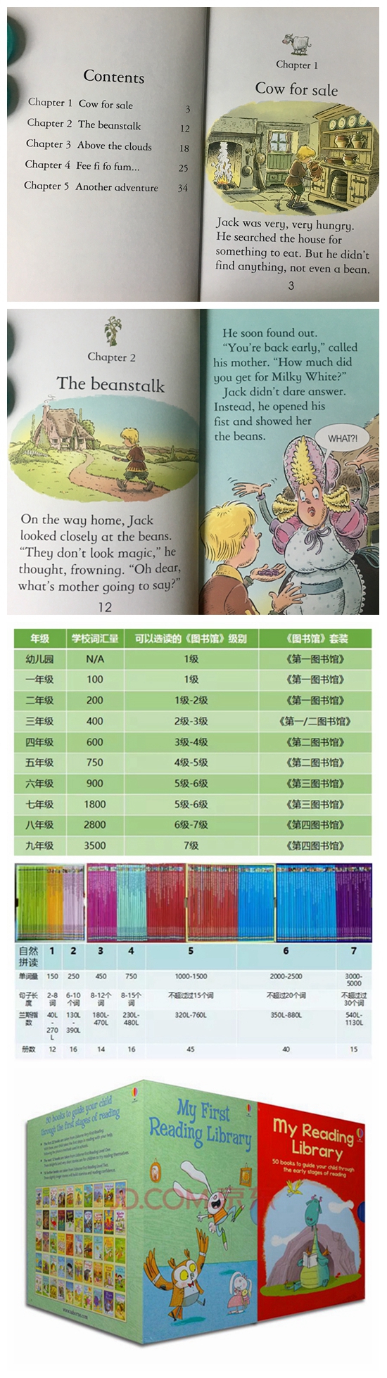 USBORNE图书馆系列到LEVEL5之后,词汇量增加到1000-1500,每页的文字数量在十行左右,共48页,涵盖了英文大部分的语态和时态。从这个级别开始,由图画书逐渐过渡到章节阅读。适合小学五六年级和初中生作为词汇量扩展读本。Level5系列均为世界知名的民间故事和童话故事,学生一般都已接触过中文版本。