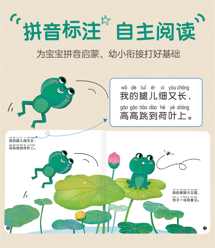 《小米粒念童谣》共3辑,其中《小米粒念童谣 第3辑》共12册,分别为:《小青蛙》《斑马》《小白兔白又白》《小燕子》《两只小蜜蜂》《骆驼志气大》《花蝴蝶和蝴蝶花》《可爱的太阳》《月儿弯弯挂树梢》《彩虹桥》《影子》《风来了》。第3辑的主题是自然认知,包含12首经典有趣的童谣,通过对这些童谣的改编和拓展,希望在培养孩子语感的同时,帮助他们认知周围的动植物和大自然。